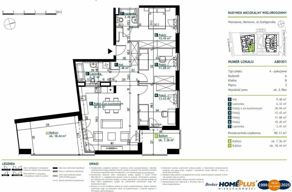 ETAP 6 - LOKAL nr AB0301, dwa balkony: 18,44 m + 7,36 m