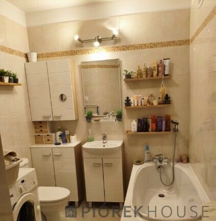 - łazienka z wc wraz z umeblowaniem i pralką;