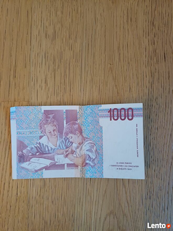 Dzień dobry. Do sprzedania mam 1000 lirów z 1990r. Stan znakomity. Odbiór osobisty lub wysyłką pocztą (przelew na telefon). Warszawa, Mokotów, ul. Bukowińska 2. Cena tylko 40zł do negocjacji Cena tylko 40zł do negocjacji lub zamiana na banknot z NRD lub z Czechosłowacji. Tel. 600 - pokaż numer telefonu - .Sprawdź zainteresowanie tym ogłoszeniem