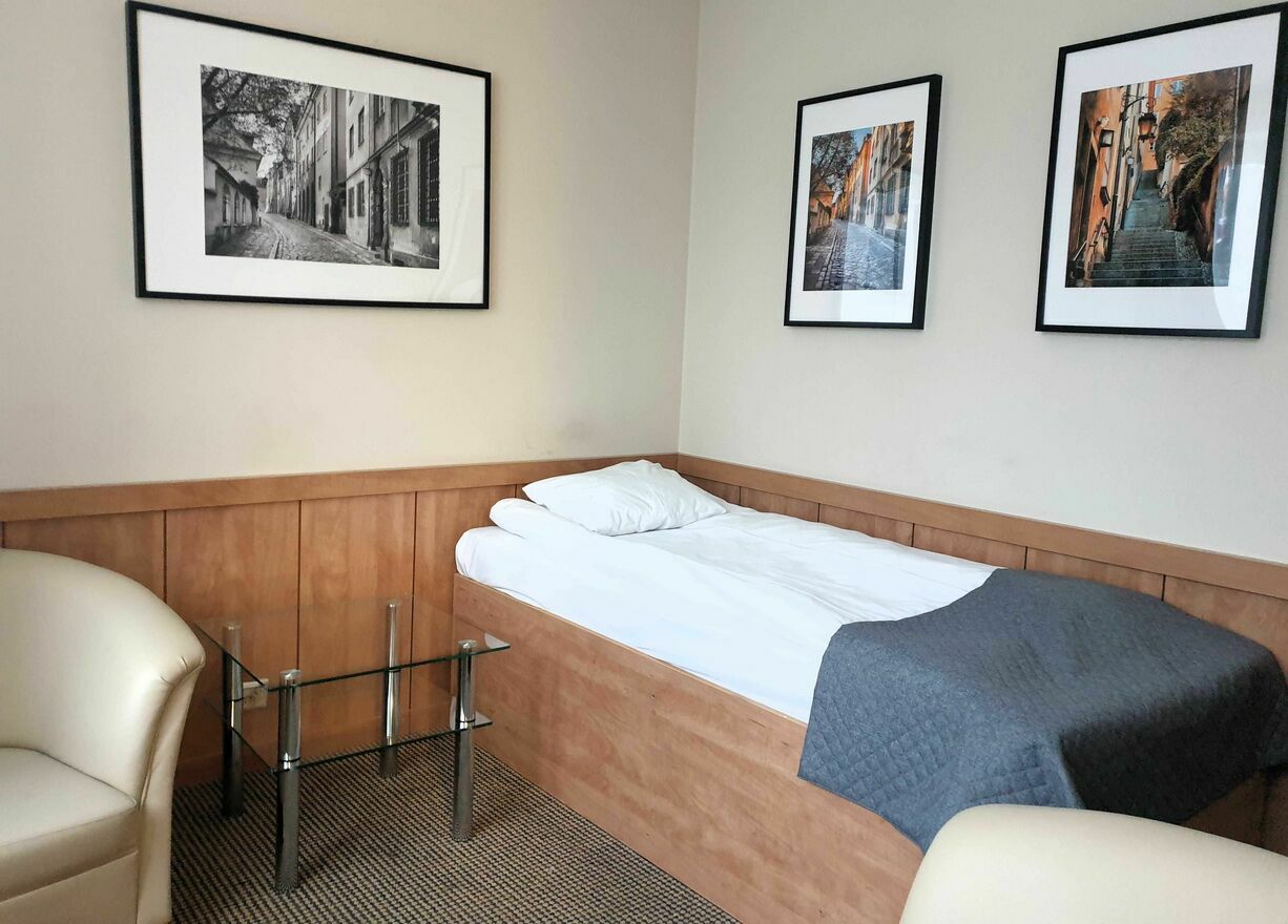 • sypialnia – dwa łóżka jednoosobowe, szafa, szafka nocna, pościel,
