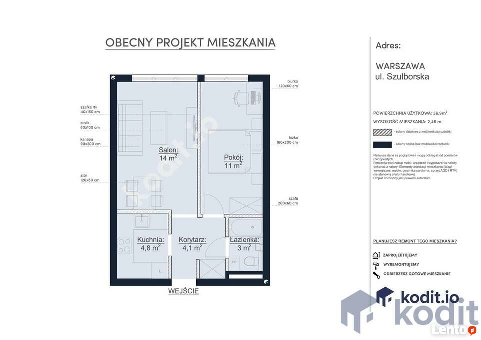 Mieszkanie o łącznej powierzchni 36,90 m2 składa się z