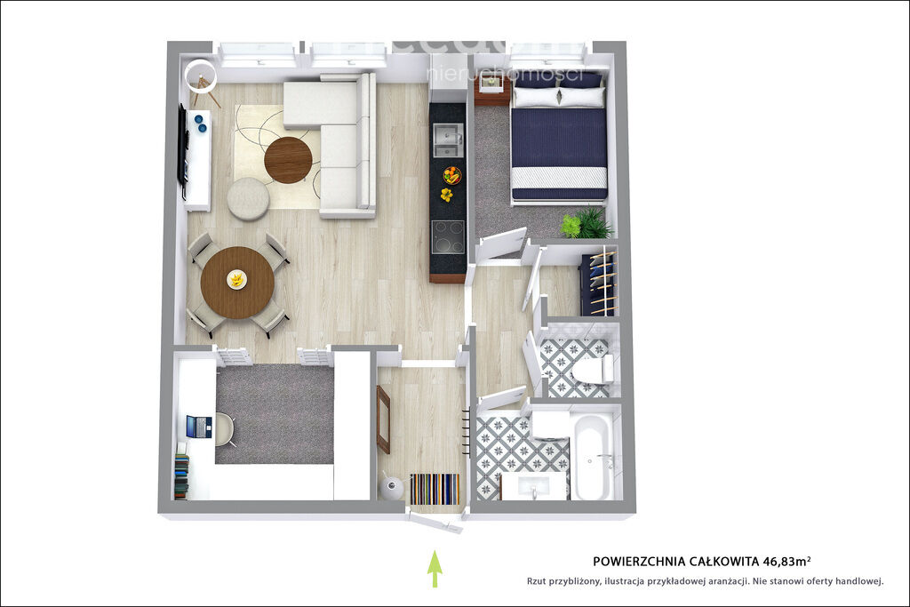 - Funkcjonalny układ - przestronny salon z aneksem kuchennym (21,80