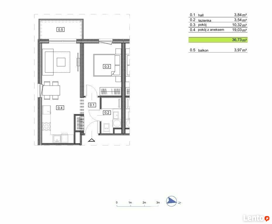 - pokoju dziennego z aneksem kuchennym - 19,03 m2