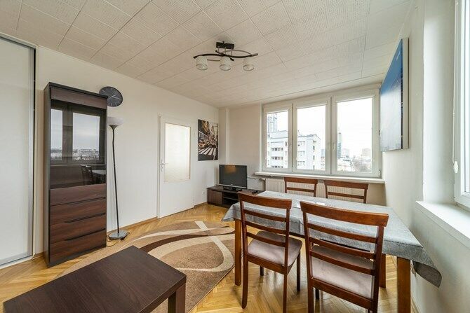 10. piętro w zadbanym bloku w pobliżu Placu Zawiszy.