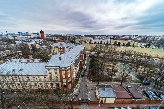 Warszawy, z pięknym widokiem na zielone dachy Filtrów Warszawskich.
