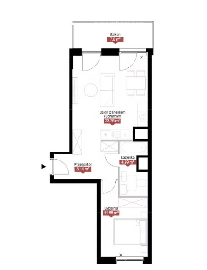 Układ mieszkania – 47 m² Mieszkanie zostało zaprojektowane w