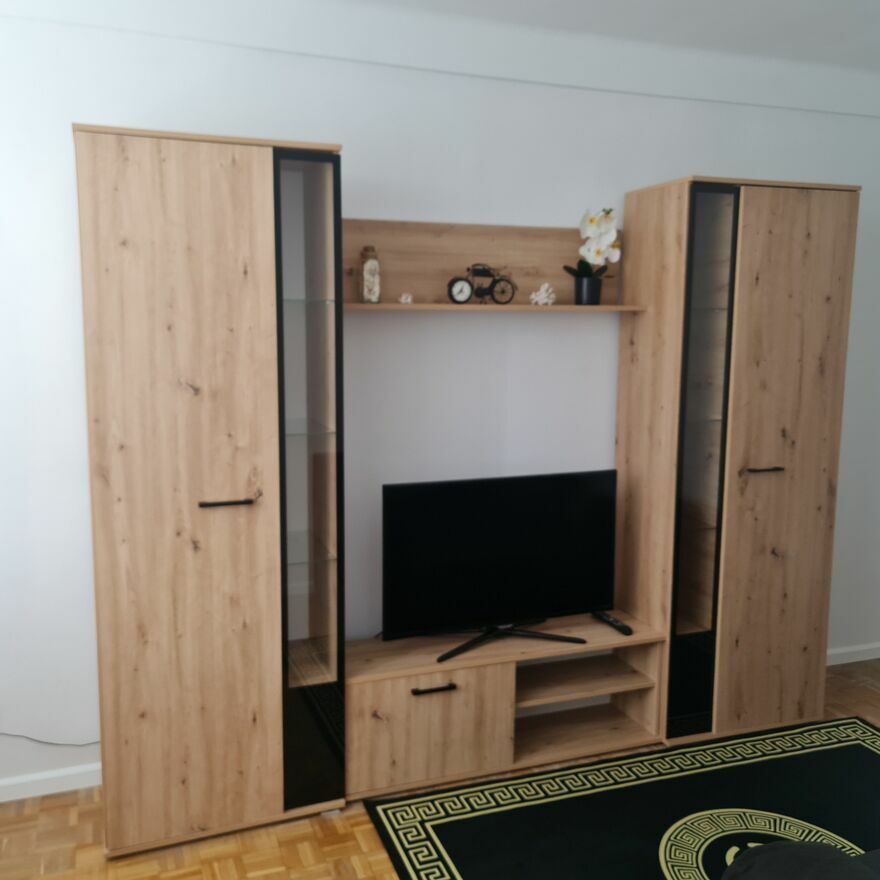 • Umeblowany pokój/sypialnia : meblościanka, komoda, rozkładana kanapa, telewizor SMART TV 32 cale)