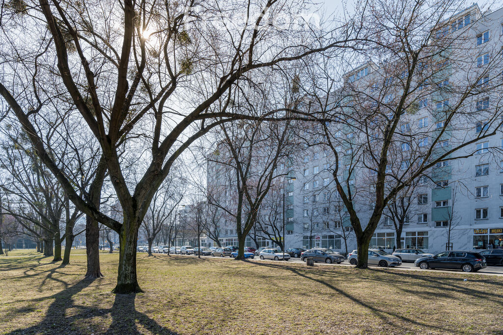 To mieszkanie na sprzedaż znajduje się na 3. piętrze w bloku z 1967roku przy ul. Karmelickiej na osiedlu Muranów w Warszawie. Budynek