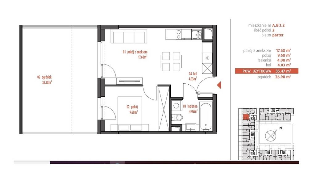 Zapraszam do zapoznania się z ofertą kompaktowego, dwupokojowegomieszkania z ogrodem idealnego na start lub jako inwestycja.
