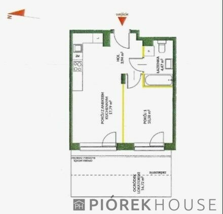 Mieszkanie o powierzchni 39 m2 składa się z: