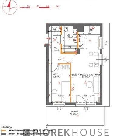 Mieszkanie o powierzchni 40,5 m2 składa się z:
