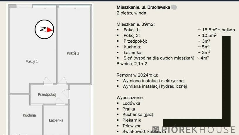 - Powierzchnia:39 m2