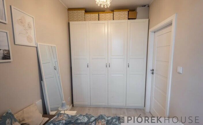 -oddzielna sypialnia z dużą szafą oraz łóżkiem z pojemnikiem do