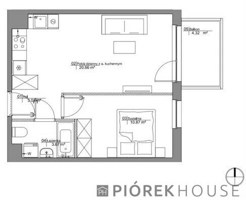 Mieszkanie o powierzchni 39,1m2 składa się z: