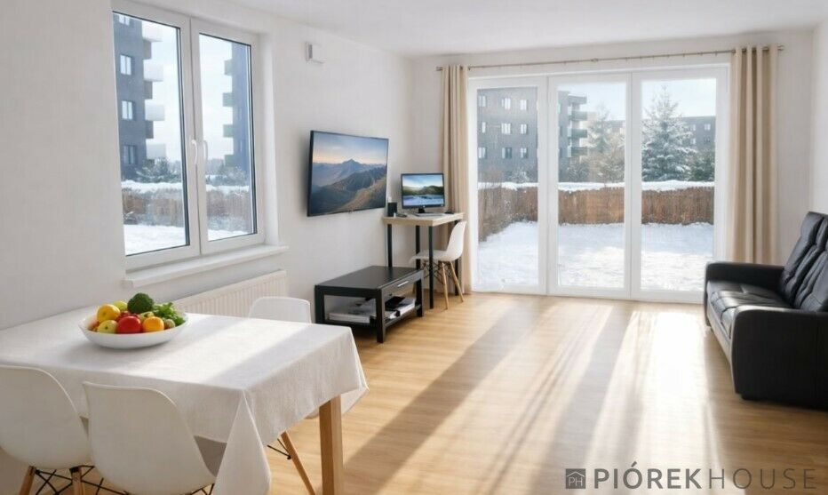 Mieszkanie znajduje się w nowoczesnej zabudowie, z cichym i zadbanym