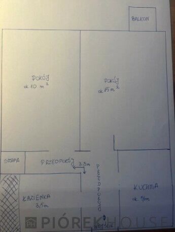 - jasnego pokoju o pow. około 15 m2 z wyjściem na balkon,
