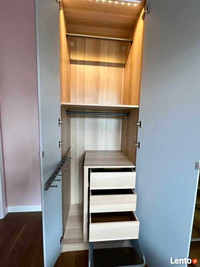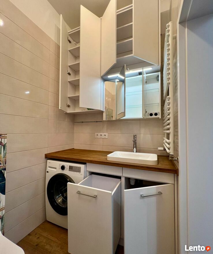 Do wynajęcia mieszkanie w bardzo dobrym stanie — świeżo po remoncie, w pełni wyposażone w sprzęt AGD: nowa pralka (9 kg), nowy okap, nowy piekarnik, płyta indukcyjna, duża zmywarka oraz lodówka. Meble kuchenne i szafy wnękowe zostały wykonane na wymiar — są bardzo pojemne (do sufitu). W sypialni znajduje się łóżko z pojemnikiem na pościel oraz nowy materac o wymiarach 200 × 180 cm.Możliwość umeblowania salonu według potrzeb najemcy lub wstawienia własnych mebli.