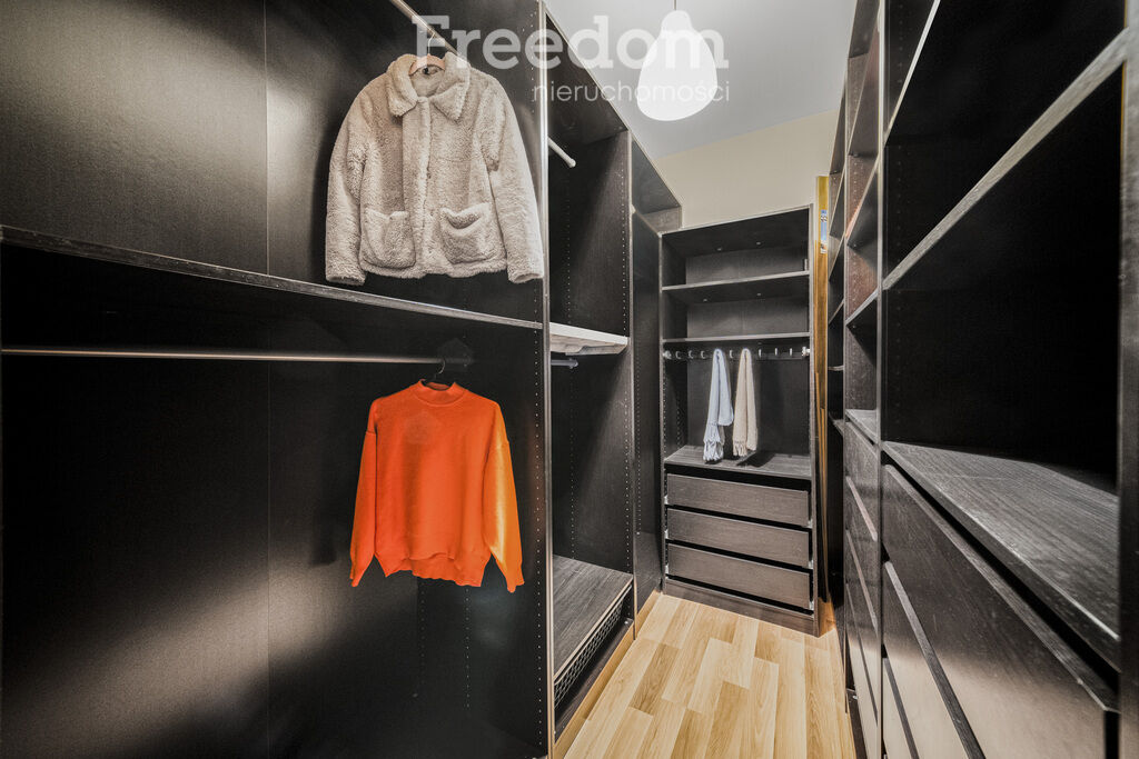 - osobnej garderoby z wieloma półkami i szufladami,