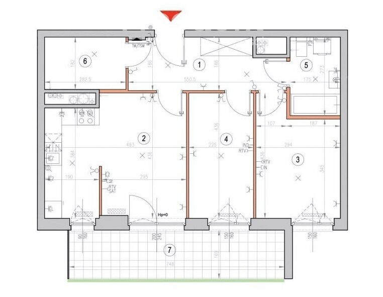 - salonu z wyjściem na szeroką loggię, połączonego z kuchnią