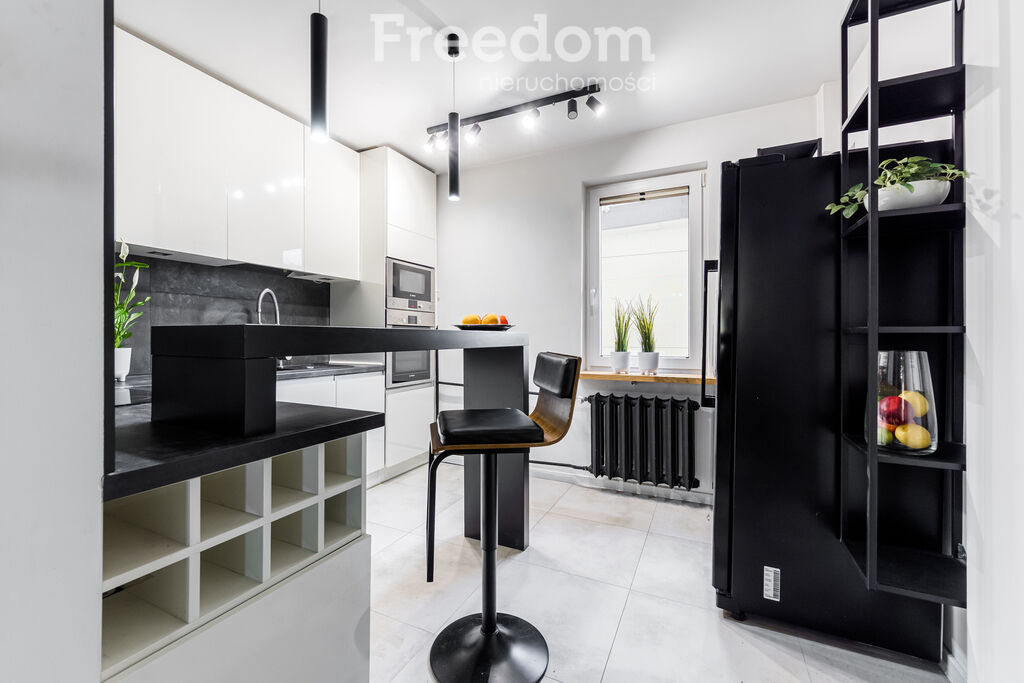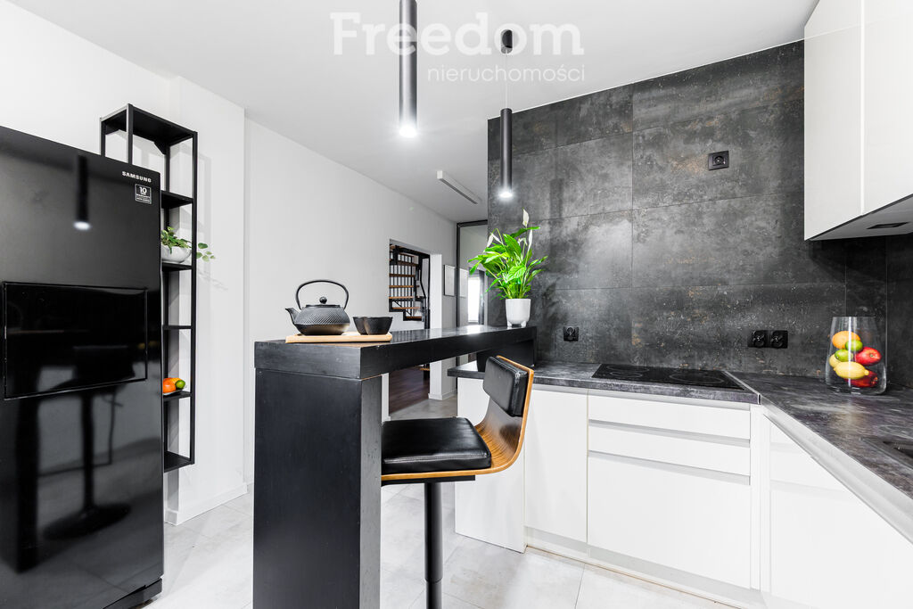 W kuchni: lodówka, zmywarka, płyta indukcyjna, piekarnik, mikrofala.