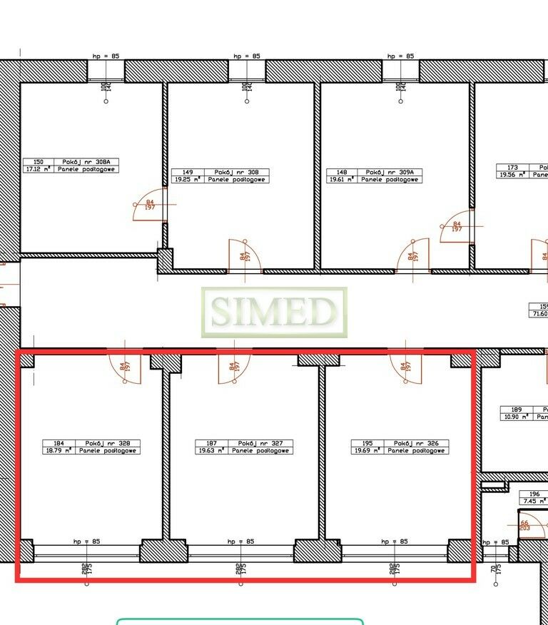 pow. 18,79 m 2 , 19,63 m 2 oraz 19,69 m 2 w kształcie prostokąta .