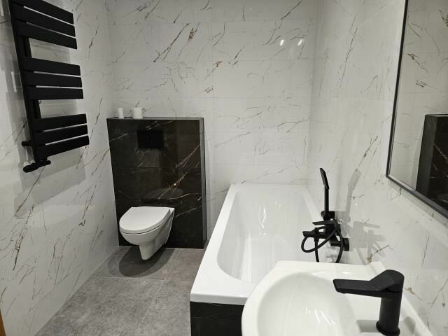 - Dwie nowoczesne łazienki: jedna z prysznicem, a druga z wanną.