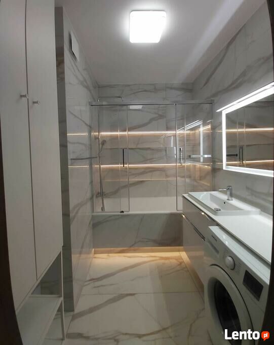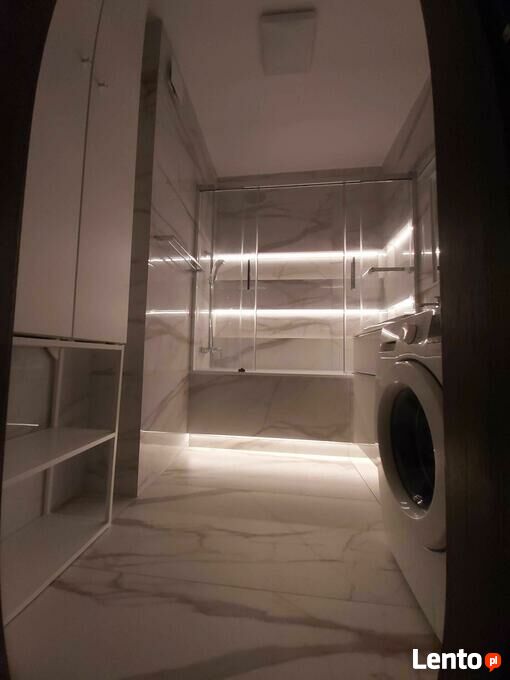 w kuchni sprzęt AGD (piekarnik, zmywarka, lodówka, płyta indukcyjna, zestaw naczyń), pralka w łazience, w przedpokoju 2 szafy w zabudowie. Możliwość podłączenia sygnału internetowego oraz telewizyjnego od operatora PLAY(UPC), NETIA, VECTRA, JMDI. Do mieszkania przynależy obszerny balkon. Mieszkanie jest bardzo dobrze doświetlone, wysoki standard wykończenia.