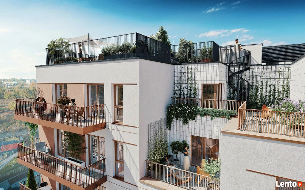 się tarasy na ostatniej kondygnacji, dwupoziomowe mieszkania oraz