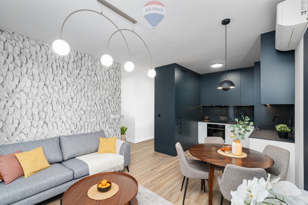 * Salon z otwartą kuchnią i jadalnią – w pełni umeblowany,