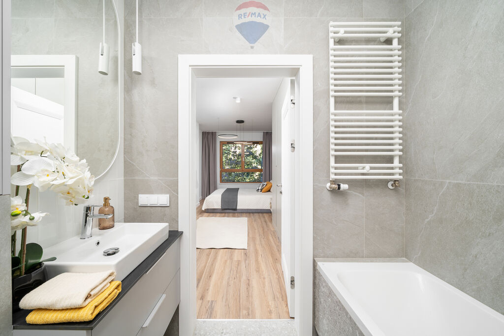 * Dwie łazienki – jedna z wanną, druga z kabiną prysznicową i