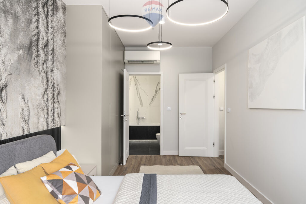 sześciu pomieszczeń (dwie sypialnie, przedpokój, dwie łazienki,