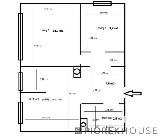 Mieszkanie o powierzchni 56,1m2 składa się z: