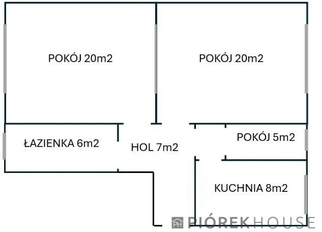 -dwóch przestronnych pokoi po około 20 m² każdy,