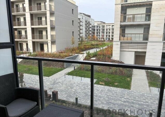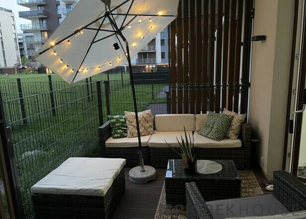 -duży taras oraz balkon, wychodzące na ciche, zielone patio.