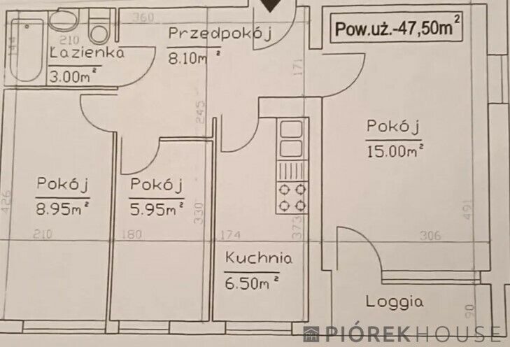 Mieszkanie o powierzchni 47,50m2 składa się z: