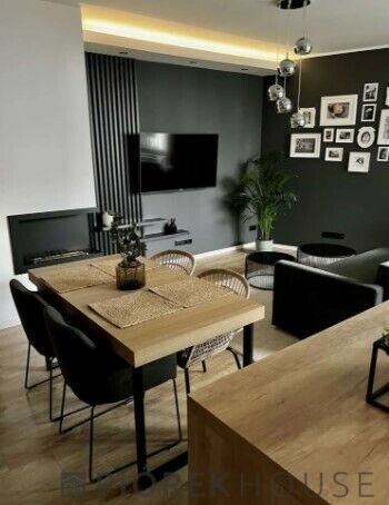-Salon z aneksem kuchennym (30,71 m2) i biokominkiem w pełnej