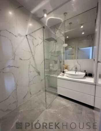 -Łazienka – elegancki blat i ściana z konglomeratu, prysznic z