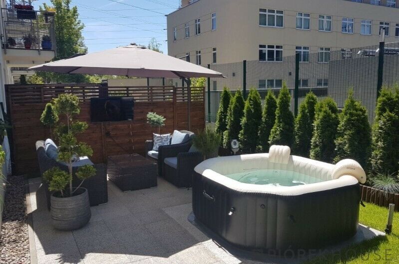 - ogródek (50m2) z jacuzzi i meblami wypoczynkowymi, wyposażony w