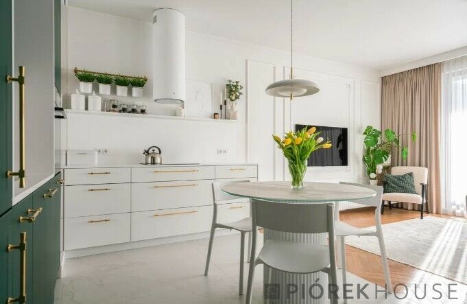 -przestronny salon z aneksem kuchennym, doskonale doświetlony dzięki