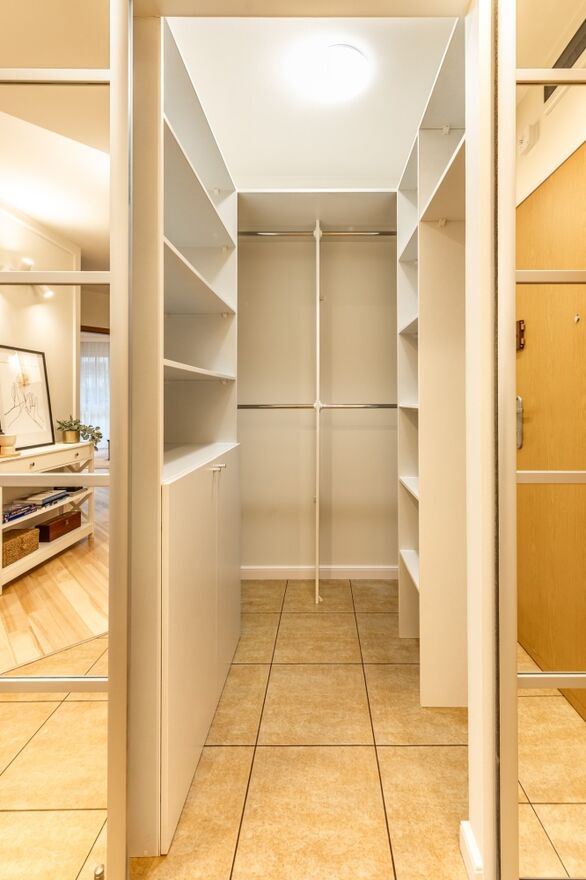 Mieszkanie oferuje bardzo funkcjonalny układ: przestronny salon z klimatyzacją i wyjściem na dużą, zabudowaną loggię od zachodu, dwie ustawne sypialnie, oddzielną i bardzo pojemną kuchnię, dwie łazienki oraz osobną garderobę.