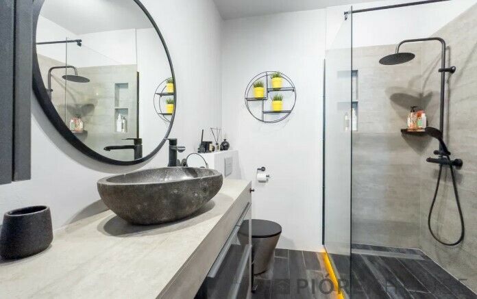 -łazienka z prysznicem i wydzieloną wnęką na pralkę (4 m2).