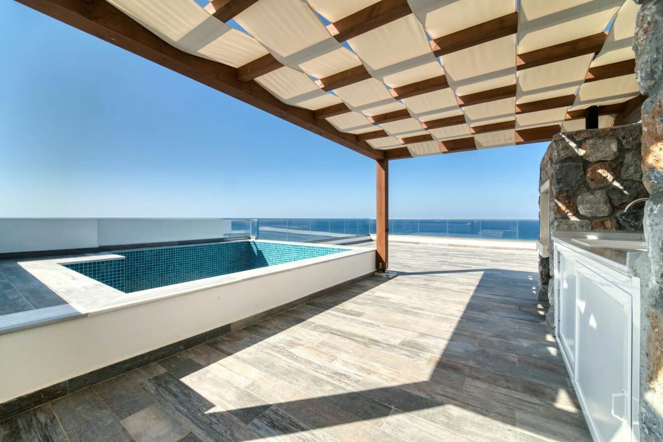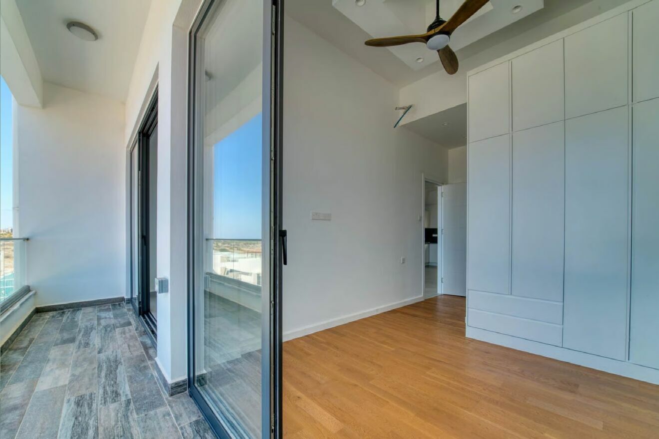 Penthouse 3+1 o łącznej powierzchni 104 m² z balkonem 10 m² oraz dużym prywatnym tarasem na dachu 70 m² z basenem. Z każdego pokoju roztacza się wyjątkowy panoramiczny widok na morze. Na dachu znajduje się w pełni zaaranżowana prywatna strefa wypoczynkowa: basen 12 m² z podświetleniem, prysznic, strefa BBQ, kuchnia z kamiennym blatem, zlewem, wodą i miejscem do przechowywania, a także oddzielona strefa techniczna z wyposażeniem klimatyzacji. Każde mieszkanie w tym kompleksie ma osobne wejście.Położony jest w Esentepe, jednym z najpiękniejszych i najszybciej rozwijających się rejonów Kyrenii. Wyposażona plaża znajduje się w zasięgu spaceru, a zaledwie kilka minut jazdy dzieli obiekt od słynnego Korineum Golf Club — międzynarodowego 18-dołkowego pola golfowego, które przyciąga sportowców z całego świata i zwiększa wartość nieruchomości w regionie.