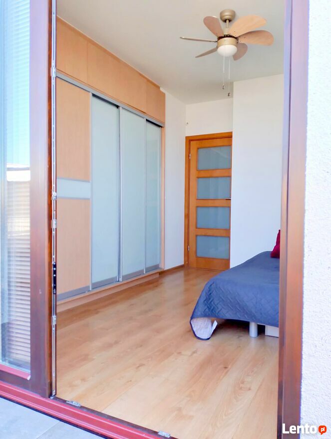 W sypialni rozkładane łóżko oraz duża pojemna szafa wnękowa.