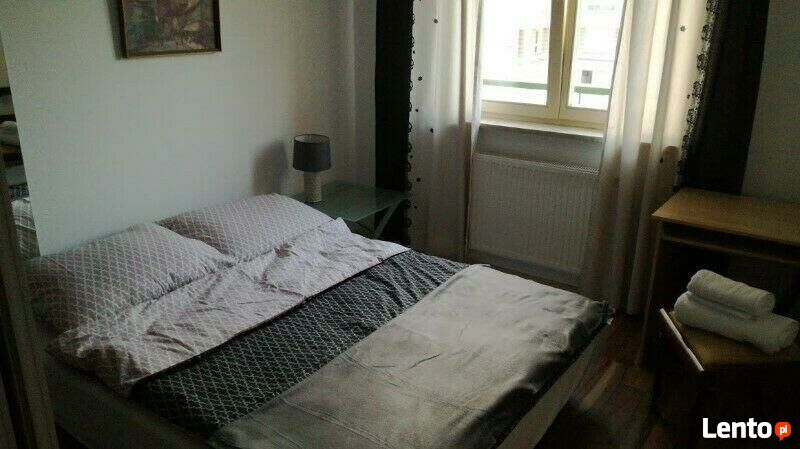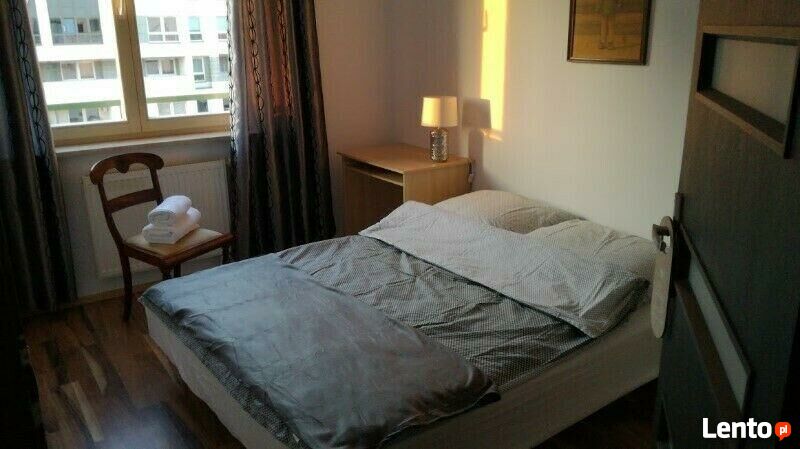 Mieszkanie składa się z dużego salonu, połączonego z widną kuchnią oraz 4 sypialni. Każdy pokój jest niezależny, wyposażony w dwuosobowe łóżko ( 160x200m), biurko, szafę ( standard hotelowy). Dodatkowo do dyspozycji są 2 wygodne łazienki z wannami oraz prysznicami. Do mieszkania przynależy 6m balkon, z którego rozciąga się piękny widok na panoramę Warszawy.