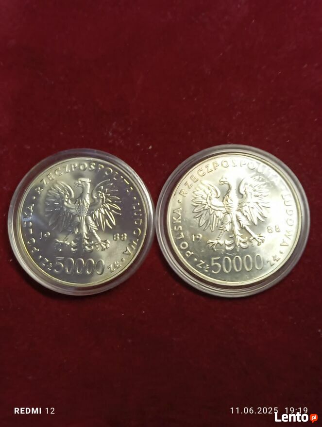 SPRZEDAM 2 MONETY 50 000zł z własnej kolekcji200 zł z 1 szt + 12 zł KW