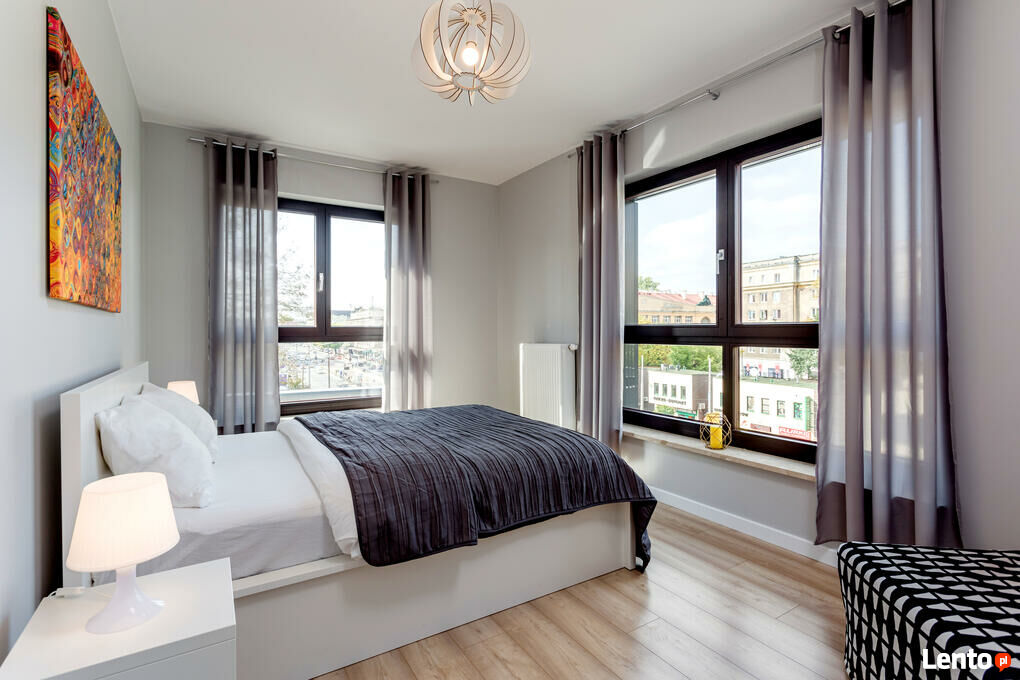 Do wynajęcia 3-pokojowe mieszkanie z tarasem w apartamentowcu przy ul. Wolskiej64m2 - mieszkanie składa się z salonu połączonego z kuchnią i wyjściem na balkon, dwóch sypialni, łazienki i przedpokoju.