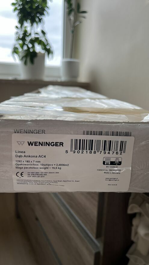 Sprzedam to co mi zostało z wymiany paneli - 7 sztuk Dąb Ankona AC4 o grubości 7 mm.Producent: Weninger.
