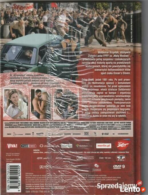 80 milionów (booklet) [DVD] 80 milionów Kraj: Polska Rok produkcji: 2011 Reżyseria: Waldemar Krzystek Scenariusz: Waldemar Krzystek, Krzysztof Kopka, Krzysztof Konopka Obsada: Jan Frycz, Lech Dyblik, Krzysztof Globisz, Przemyslaw Bluszcz, Piotr Glowacki, Adam Ferency, Witold Wielinski, Krzysztof Czeczot, Krzysztof Stroinski, Sonia Bohosiewicz, Mateusz Janicki, Andrzej Deskur, Wojciech Solarz, Marcin Bosak, Krzysztof Dracz, Miroslaw Baka, Mirosław Baka, Bartlomiej Firlet, Cezary Morawski, ... Opis Waldemar Krzystek, zdobywca Złotych Lwów FPFF za "Małą Moskwę", przedstawia pełną suspensu i zaskakujących zwrotów akcji historię opartą na prawdziwych wydarzeniach, której nie powstydziliby się scenarzyści hollywoodzkich hitów spod znaku Ocean's Eleven. Dolny Śląsk, jesień 1981 roku. Po serii prowokacji SB, konfrontacja opozycji z komunistami wydaje się nieunikniona. Tuż przed ogłoszeniem stanu wojennego, młodzi działacze Solidarności postanawiają zagrać va banque i organizują brawurową akcję wyprowadzenia z wrocławskiego banku 80 milionów związkowych pieniędzy, zanim konto zostanie zablokowane. Funkcjonariusze Służby Bezpieczeństwa podążają za nimi krok w krok. Rozpoczyna się pasjonująca rozgrywka, w którą zostają zaangażowani duchowni i? cinkciarze. Każda ze stron ma asy w rękawie. Karton 78Sprawdź zainteresowanie tym ogłoszeniem