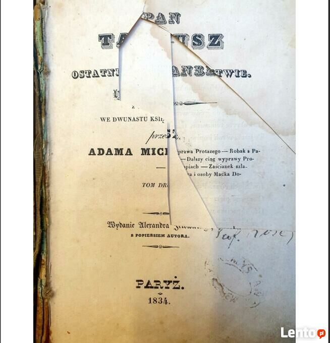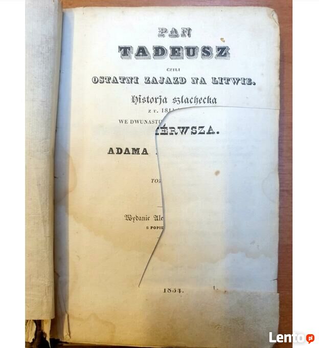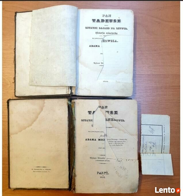 Adam Mickiewicz - Pan Tadeusz, 1834, Paryż, 2 tomy. Pierwsze wydanie.Książki używane, ślady użytkowania. Stan jak na fotografiach.