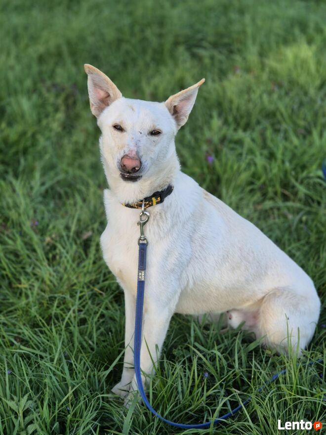 Aguś ma ok 4 lat, waży około 15 kg.To anioł nie pies.